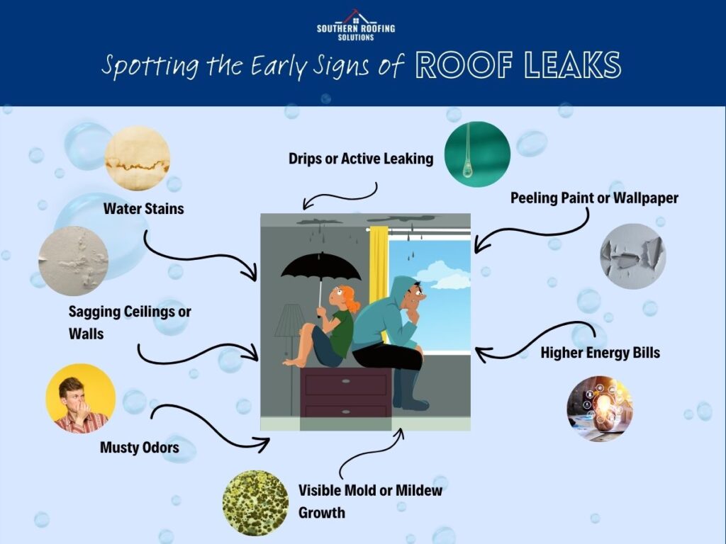 Early detection of roof leaks requires vigilance and regular inspection. Here are some early warning signs to watch for and their possible effects: