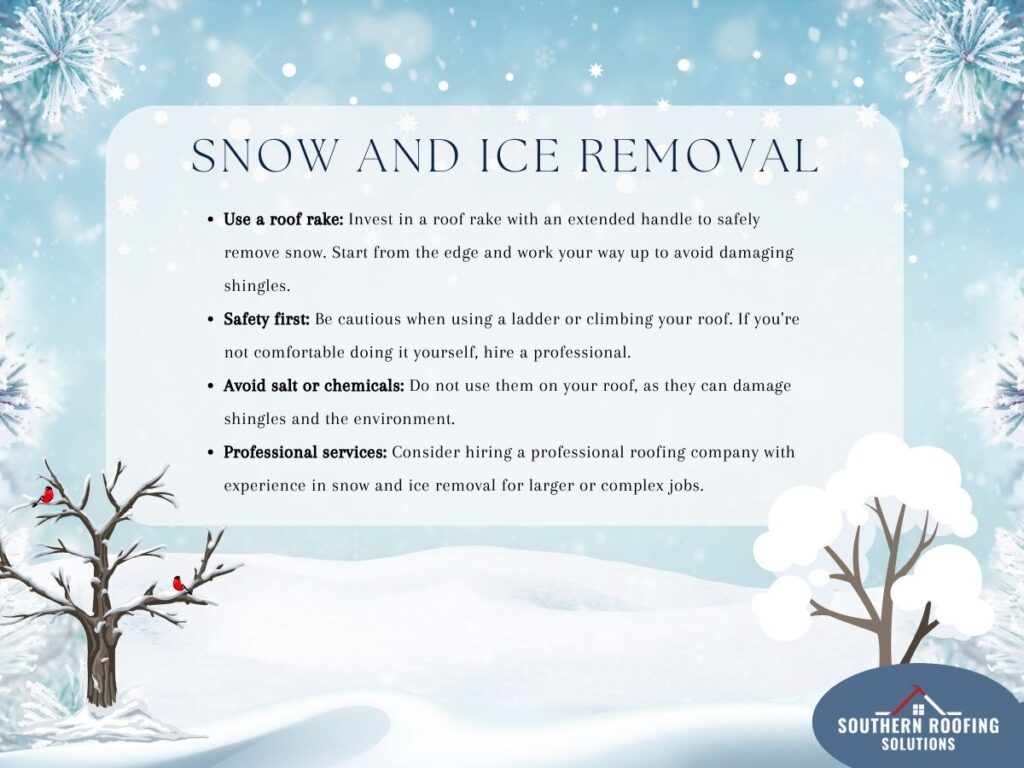 Professional services: Consider hiring a professional roofing company with experience in snow and ice removal for larger or complex jobs.